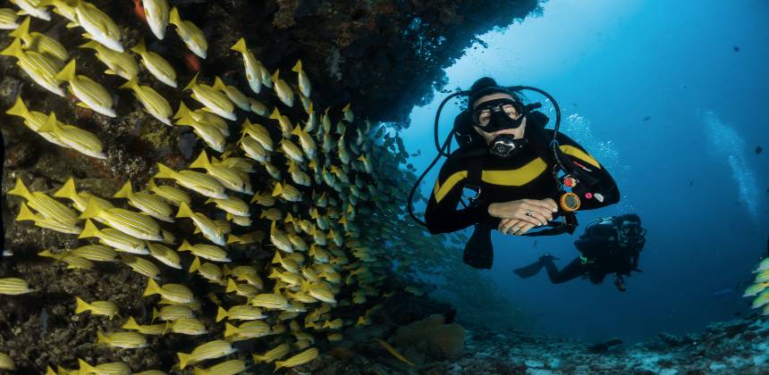 Im PADI Kurs Unterwasser Navigation verfeinern Sie Ihre Beobachtungsfähigkeiten. Sie lernen, unter Wasser Ihren Kompass präziser zu nützen. Bei der natürlichen Navigation achten Sie auf Konturen und Merkmale der Umgebung des Tauchplatzes, um den Weg hinaus und auch wieder zurück zu finden. Dank der Fähigkeit, natürliche Navigation zusammen mit dem Kompass kombinieren zu können, verirren Sie sich nie mehr unter Wasser.